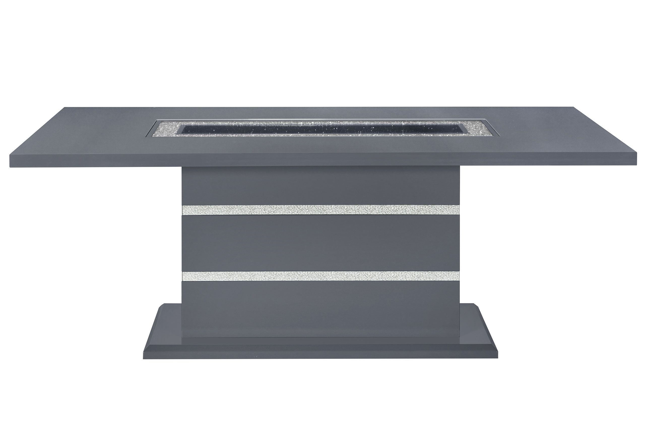 Finished In A Dark Gray And Silver With A Center Glass